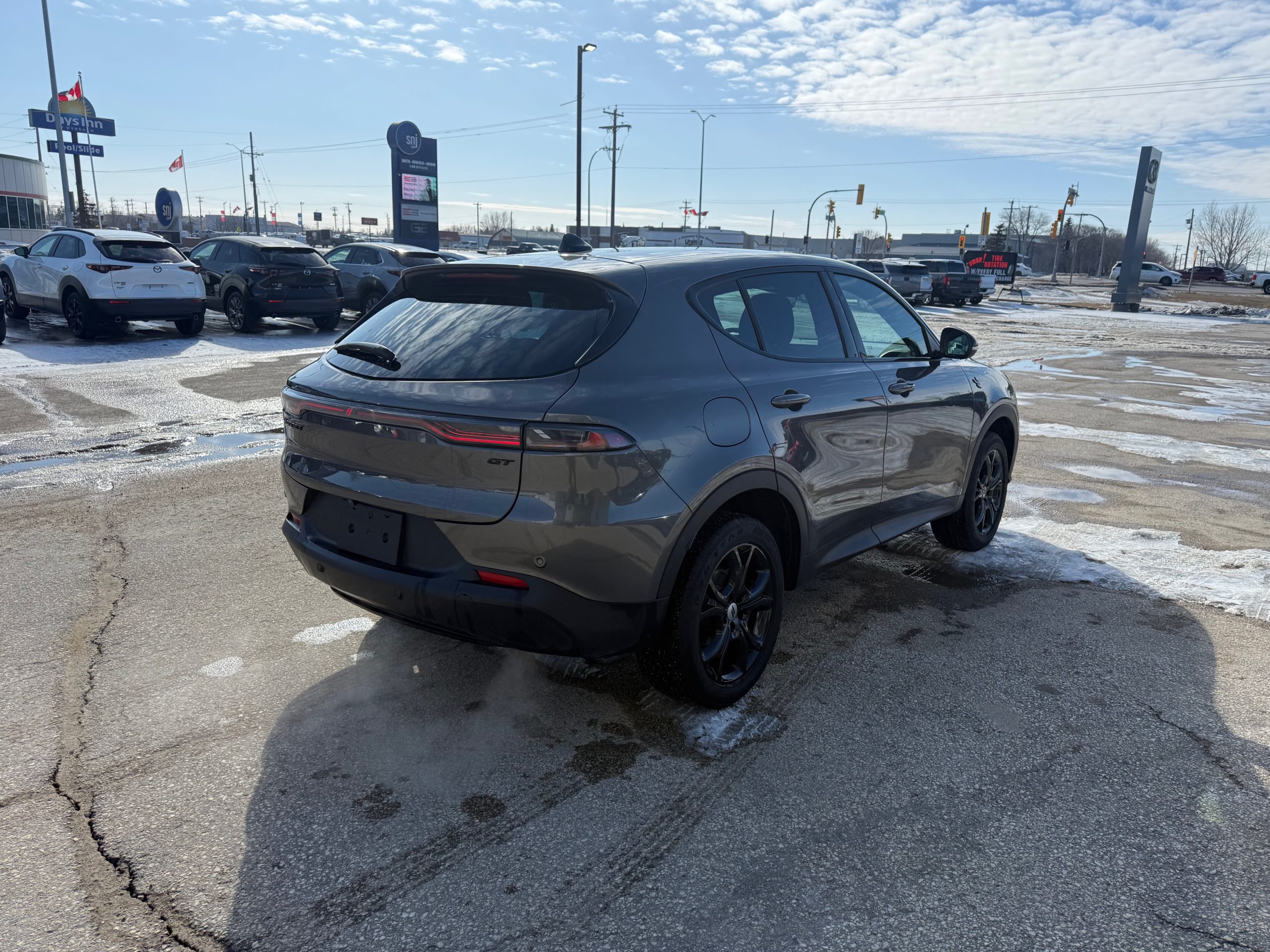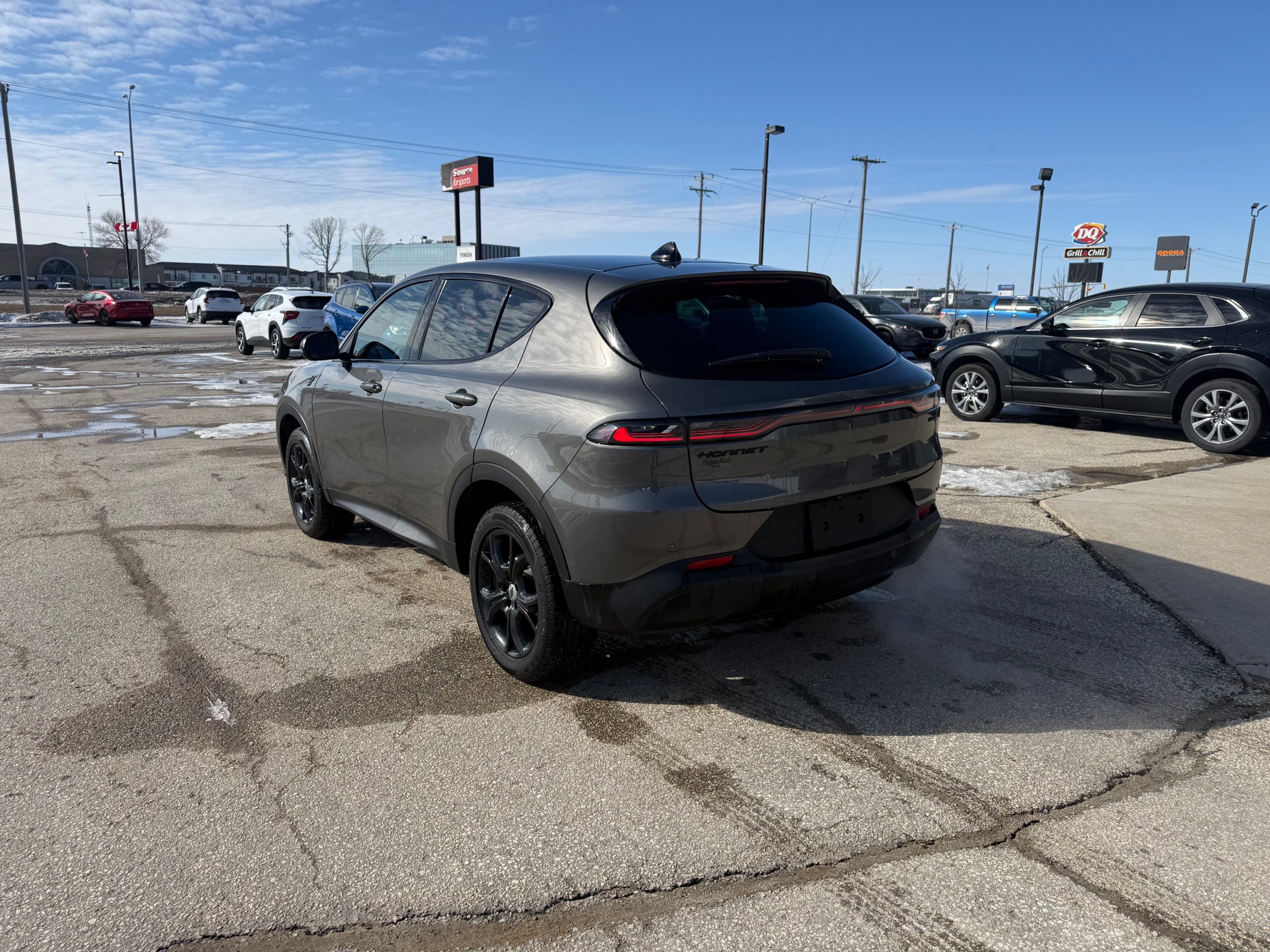 Engine: 2.0L I4 Dohc DI Turbo W/Ess, Grey Cray, Gt Blacktop Package This 2024 Dodge Hornet GT AWD enters the compact SUV segment with a bold, performance-first attitude, powered by a 2.0L Hurricane4 Turbo engine delivering a class-leading 268 hp. The driver-centric cabin is packed with modern tech, including a 10.25-inch Uconnect 5 touchscreen, a 12.3-inch digital instrument cluster, and a suite of standard safety features like Blind Spot Detection and Adaptive Cruise Control. Come by Highway Mazda today!